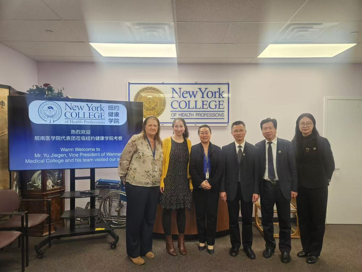 在纽约健康学院访问期间,余结根与该院院长Ellen Song及其教学、财务管理核心团队进行座谈交流。双方围绕学生联合培养、学分互认体系建设、升学就业渠道拓展等领域深入探讨,进一步明确了合作范围、合作形式及实施路径,积极为我校相关专业学生搭建赴海外学习深造、就业发展平台。
